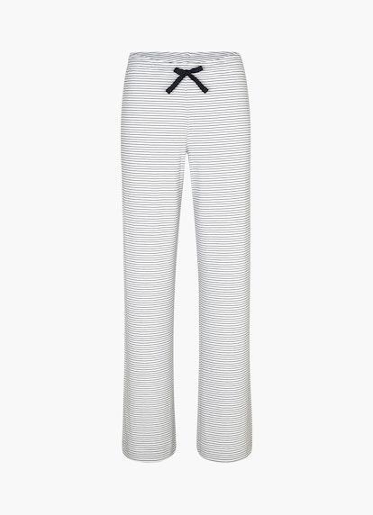 Als Nightwear-Piece überzeugt die Jerseyhose in feingerippter Qualität, komfortabel ergänzt durch den soften Tunnelzugbund. Das Streifen-Design in White-Navy verleiht einen modernen Twist, während die weite Silhouette für ein lässiges Update sorgt.