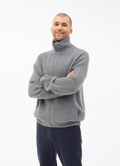 Der stilvolle Look des locker gestrickten Cardigans in Ash Grey Melange bietet vielseitige Styling-Optionen. Im Casual Fit überzeugt der luxuriöse Allrounder aus Merinowolle mit Kaschmir. Seitliche Eingrifftaschen, ein praktikabler Zwei-Wege-Zipper sowie der hohe Stehkragen verleihen ein lässiges Update.