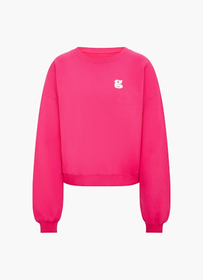 Trendy Sweater in coolem Raspberry Farbton und mit verlängerten Ärmeln. Hochwertige Baumwoll-Qualität mit angenehmem Griff. Auf Brusthöhe ist das berühmte „G“ Logo platziert.