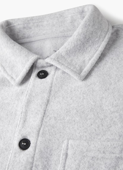 Im Frottee-Design mit einer komfortablen Innenverarbeitung aus weichem Polar Fleece überzeugt das Overshirt in Silver Grey Melange als favorisierter Style. Klassische Details verleihen der Umlegekragen, knöpfbare Ärmelabschlüsse und eine rückseitige Schulterpasse. Kontrastive Knöpfe setzen Akzente, abgerundet durch eine applizierte Brusttasche.