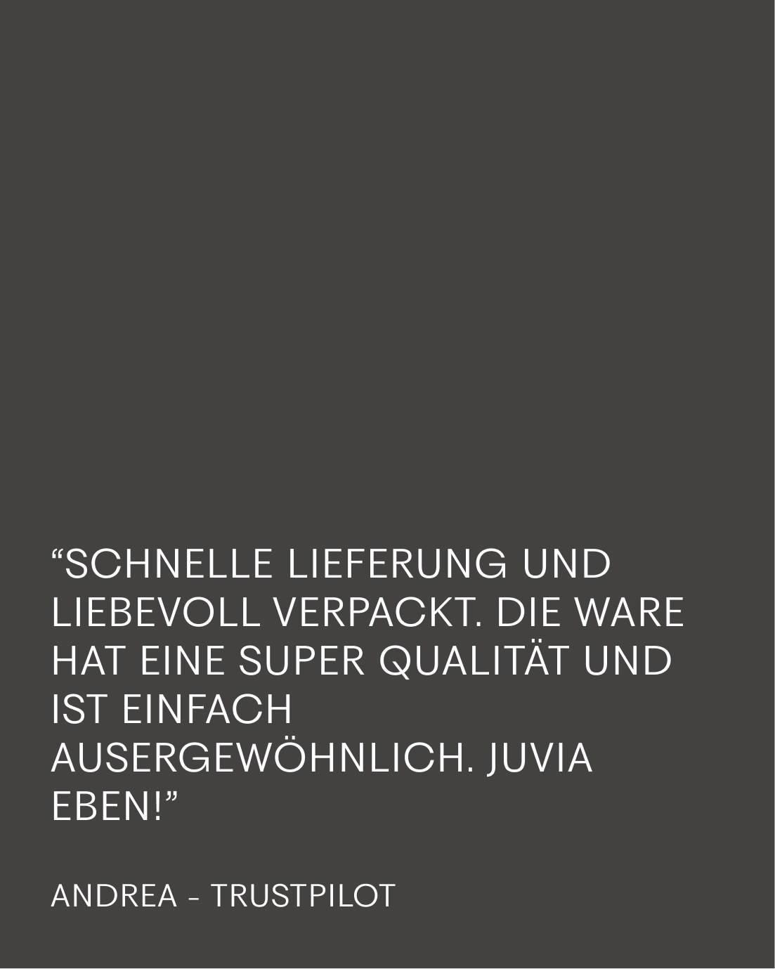 “Schnelle Lieferung und liebevoll verpackt. Die Ware hat eine super Qualität und ist einfach außergewöhnlich. Juvia eben!”