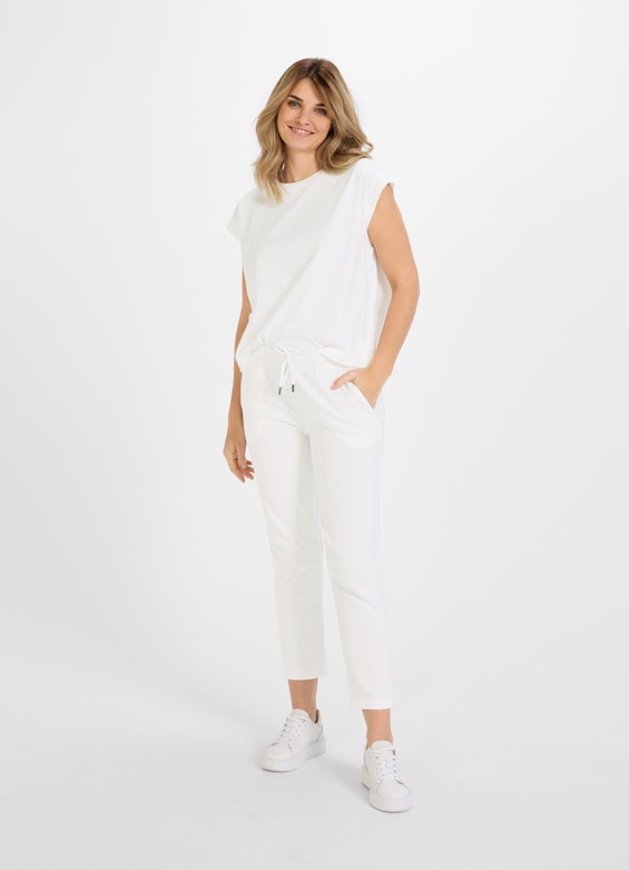 - Round neck in ribbed jersey
