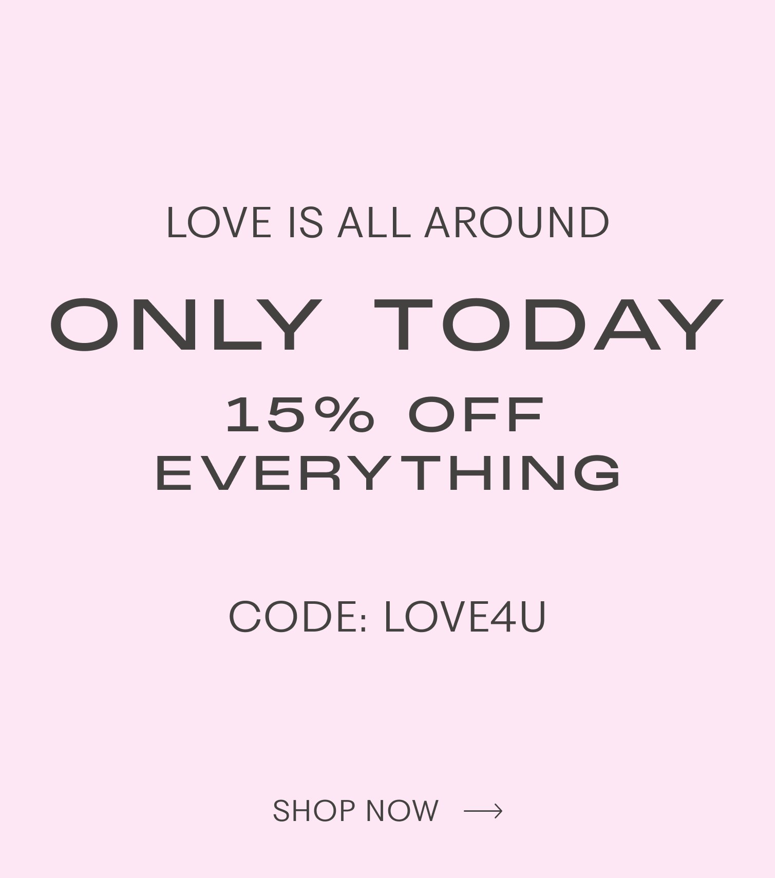 Extended – for everyone who missed it: today only 15% off everything* · Code: LOVE4U