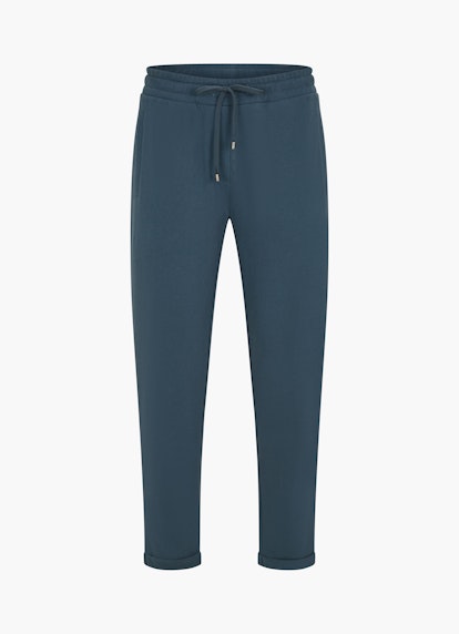 These comfy sweatpants in midnight blue are made of light cotton-mix fleece. The ribbed waistband with a drawstring, side welt pockets, and fixed turn-ups complete the modern crop silhouette.