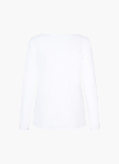 The feminine boat neckline and the mix of cotton and viscose with a delicate structure give this white long-sleeved shirt a chic charm. It is cut to fit slim with a curved hem for a harmonious finish.