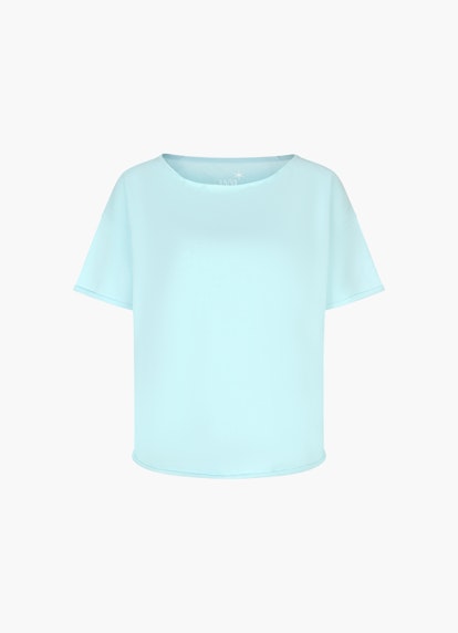 This short-sleeved sweater in aqua is a versatile styling piece. It is made of light fleece and cut in a modern oversized silhouette with a coherent dropped shoulder fit. Rolled edges add a casual twist.