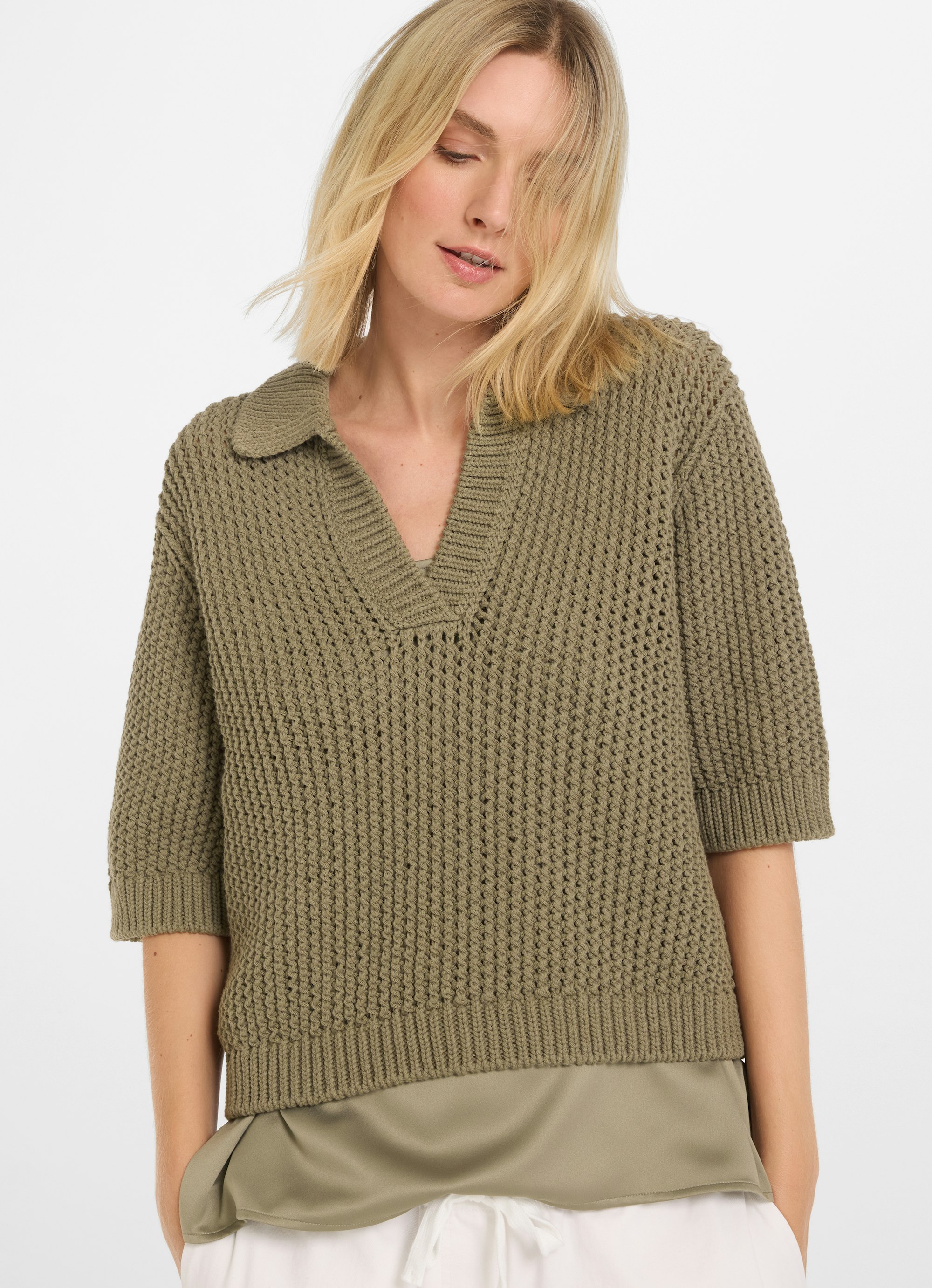 - Cropped short-sleeved polo shirt