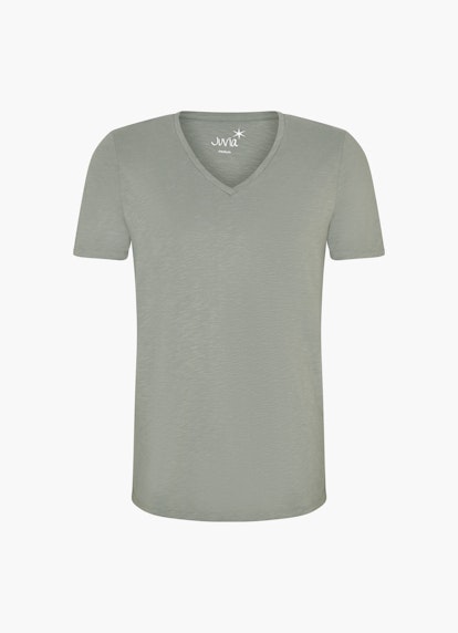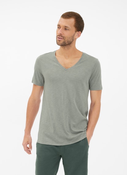 In a structured mix of cotton and viscose, the T-shirt in the shade green bay convinces as a comfy styling piece. The low v-neck and double-stitched hems round off the modern design.