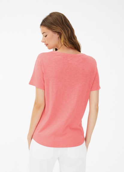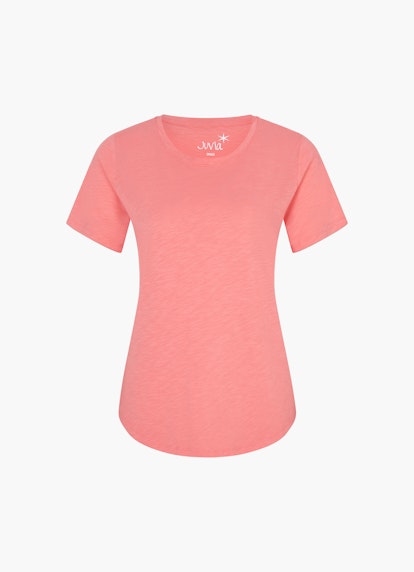 This T-shirt in a salmon shade convinces as a versatile eye-catcher. The feminine crew neck, short sleeves, and hems with double stitching distinguish the all-rounder's design.