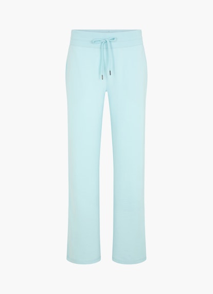 The light fleece made of a cotton mix characterizes these sweatpants in an aqua shade as a cozy piece. Their wide silhouette adds a stylish twist. A classic ribbed waistband and the side pockets complete the look.