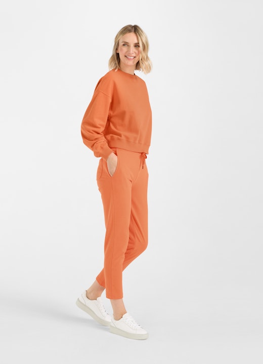 The composition of cotton and polyester (50/50) creates casual fits that sit well on the body and keep you cozy and warm at the same time. The percentage of polyester makes the pants and sweatshirts flexible, while the cotton keeps the fabric lightweight and natural. This paves the way for cozy loungewear all-rounders for everyday wear.
