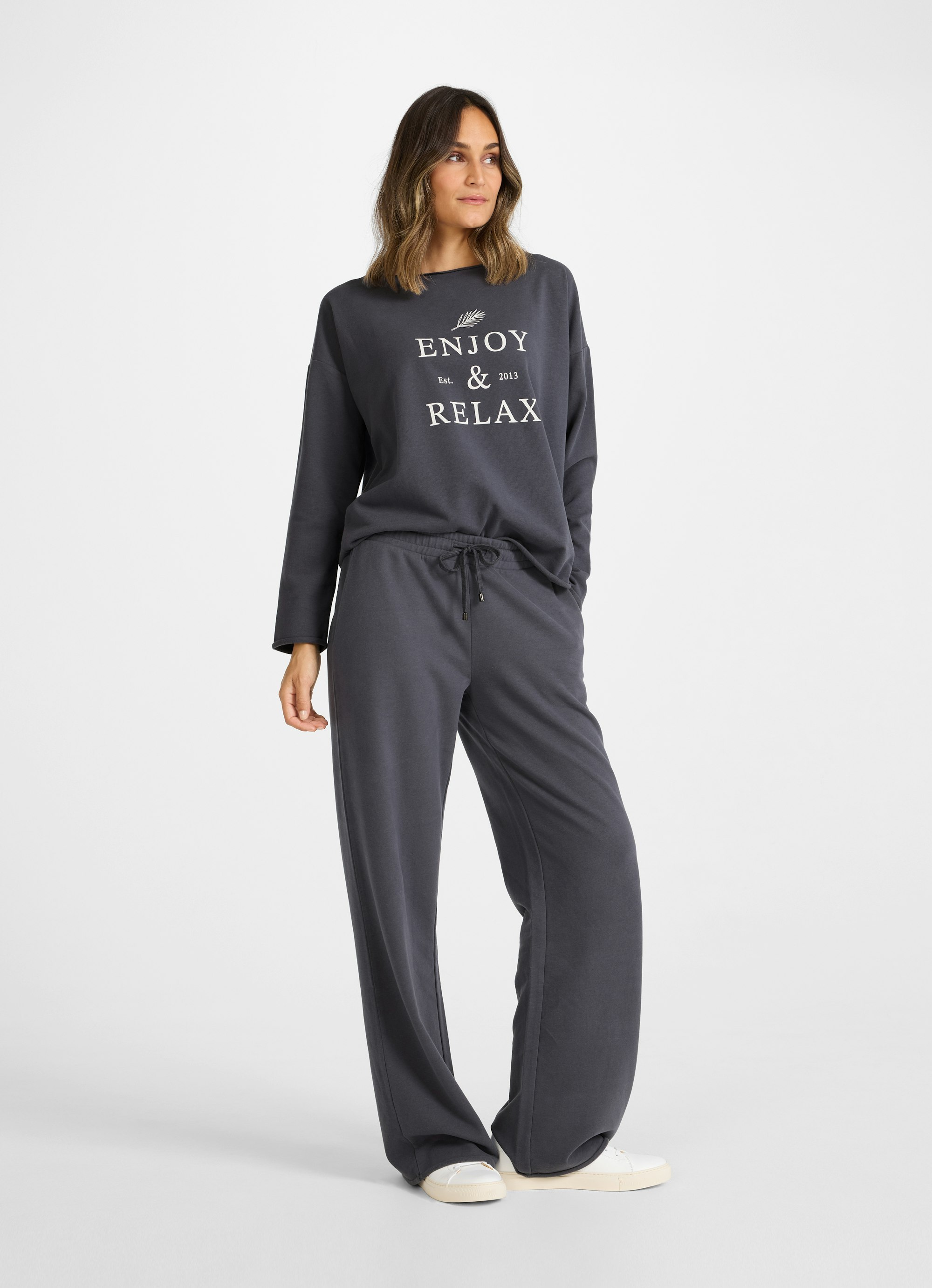 - Imprimé « Enjoy and Relax » sur le devant